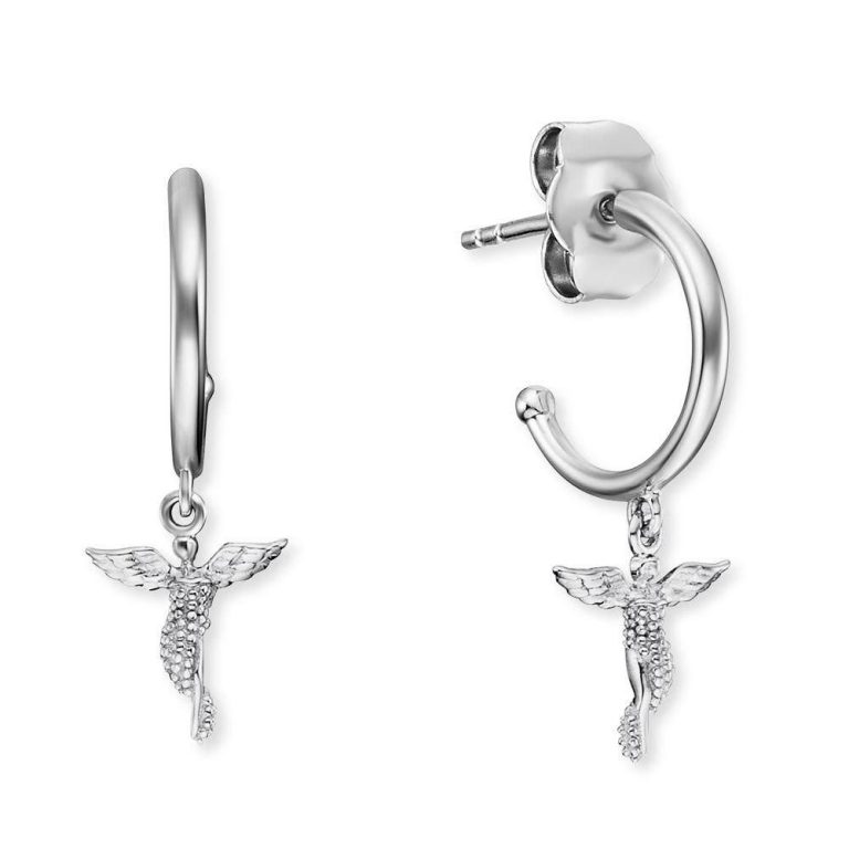 Angel Whisperer Sterling Silver Angel Hoop Earrings
