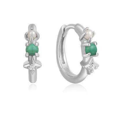 Ania Haie Silver Malachite Star Huggie Earrings