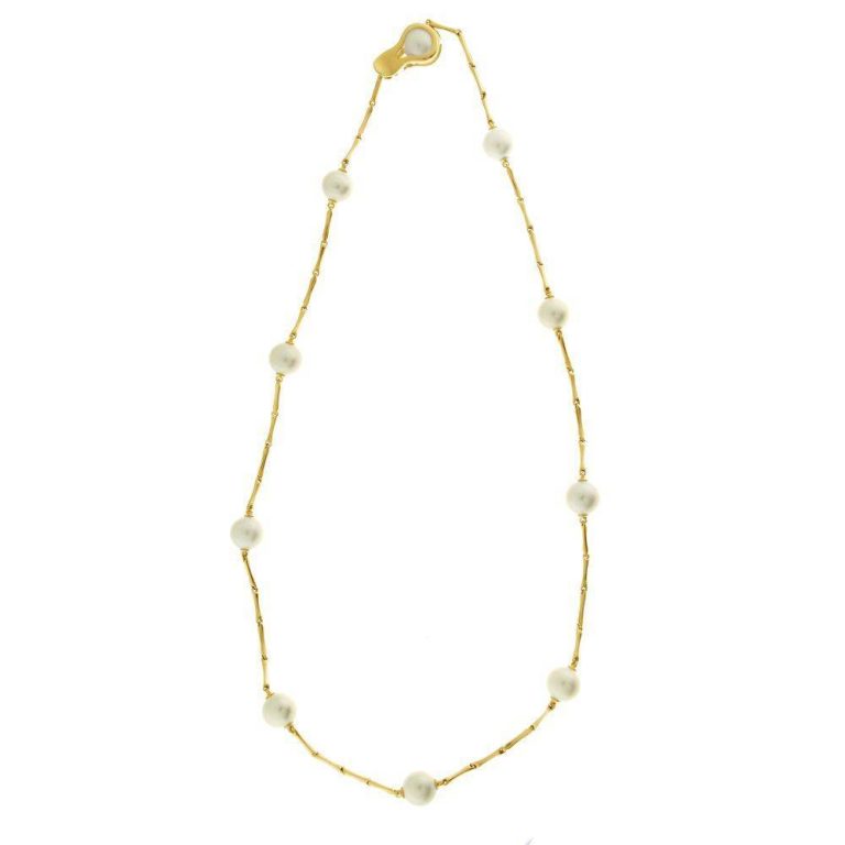 Chimento 18ct Yellow Gold Bamboo Pearl Necklace