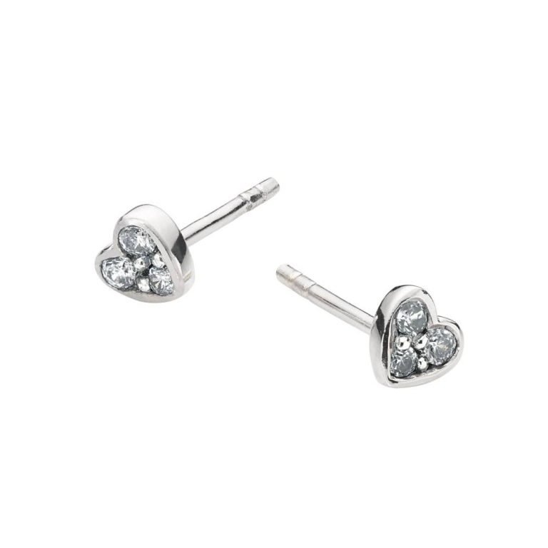 Dew Silver Tiny Heart Cubic Zirconia Stud Earrings