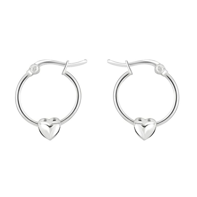 Dew Silver Small Hoop Earrings with Heart