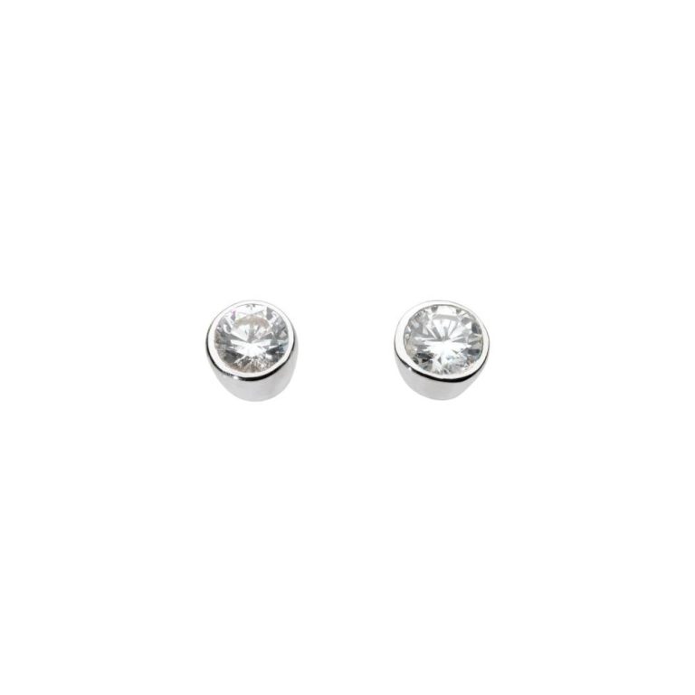 Dew Sterling Silver Cubic Zirconia Rub Over Stud Earrings