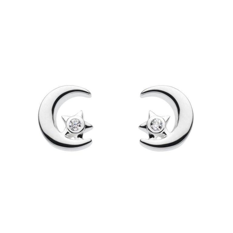 Dew Sterling Silver Moon & Stars Stud Earrings