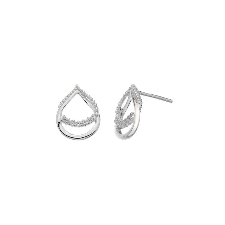 Dew Sterling Silver Teardrop Loop Cubic Zirconia Stud Earrings