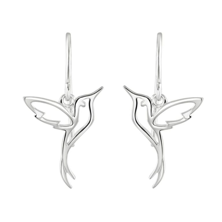 Dew Sterling Silver Hummingbird Drop Earrings