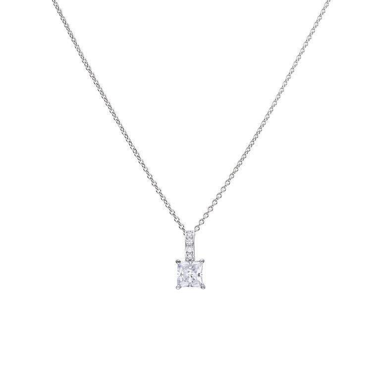 diamon Fire Princess Cut Zirconia Necklace with Pave Set Bale