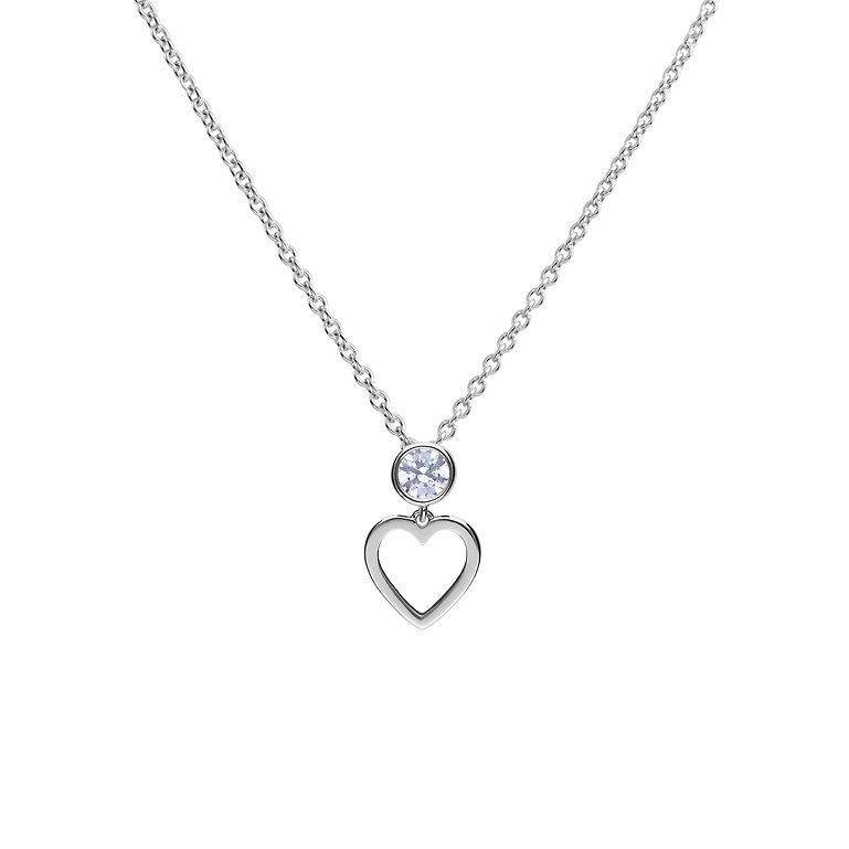 Diamonfire Rub Over Set Zirconia Open Heart Necklace