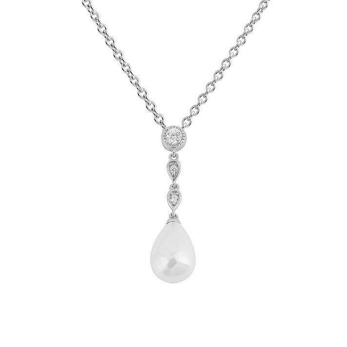 Diamonfire Shell Pearl Chain Drop Pendant with Diamonfire Zirconia