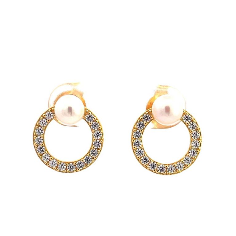 Georgini Gold Plated Pearl & Cubic Zirconia Stud Earrings