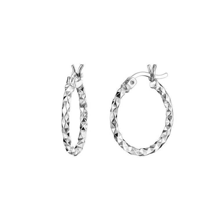 Mantra Silver 15mm Diamond Cut Hoop Earrings