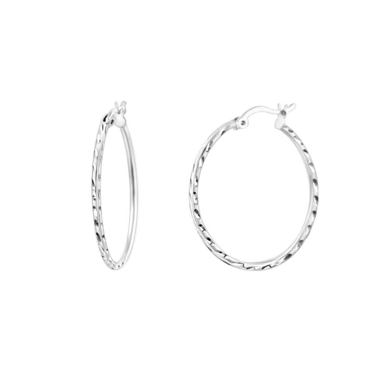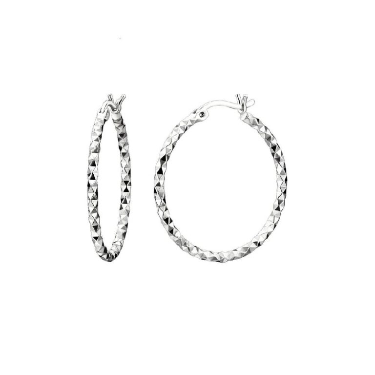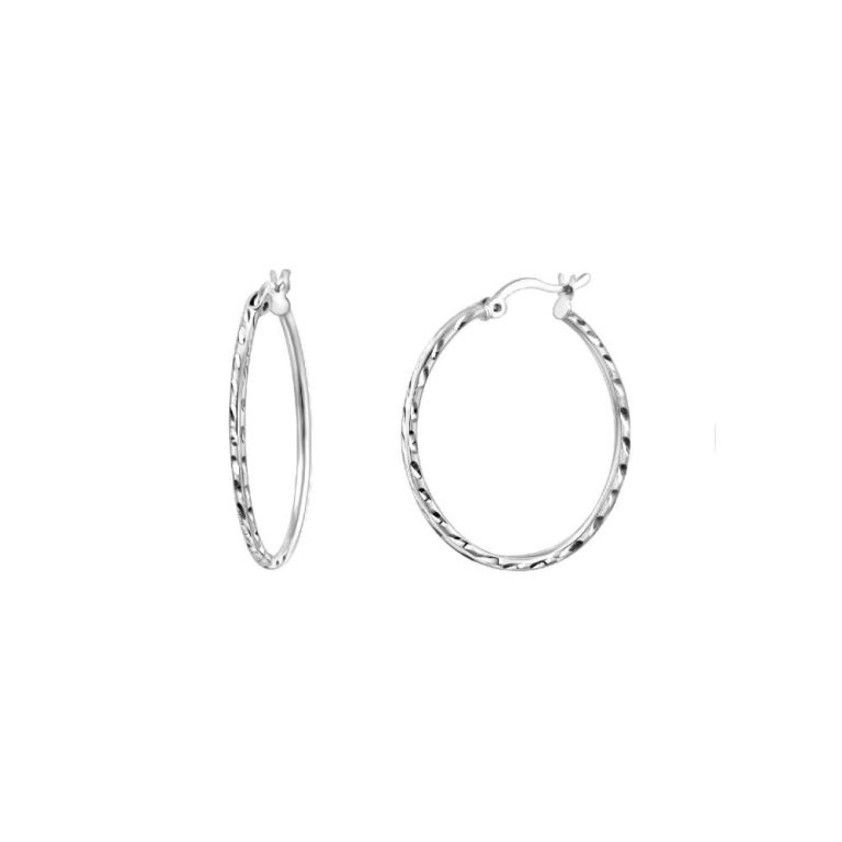 Mantra Silver 25mm Diamond Cut Hoop Earrings