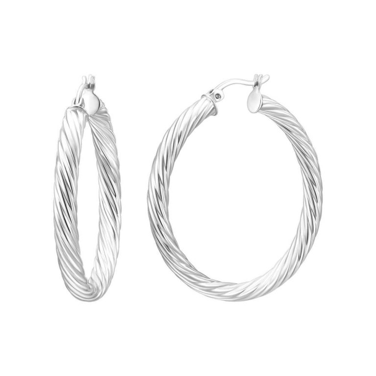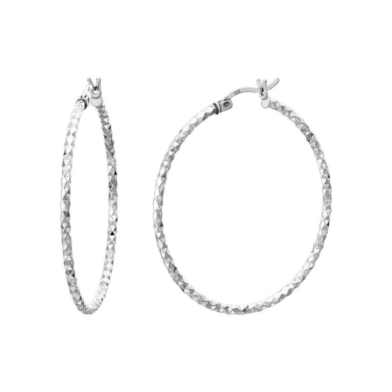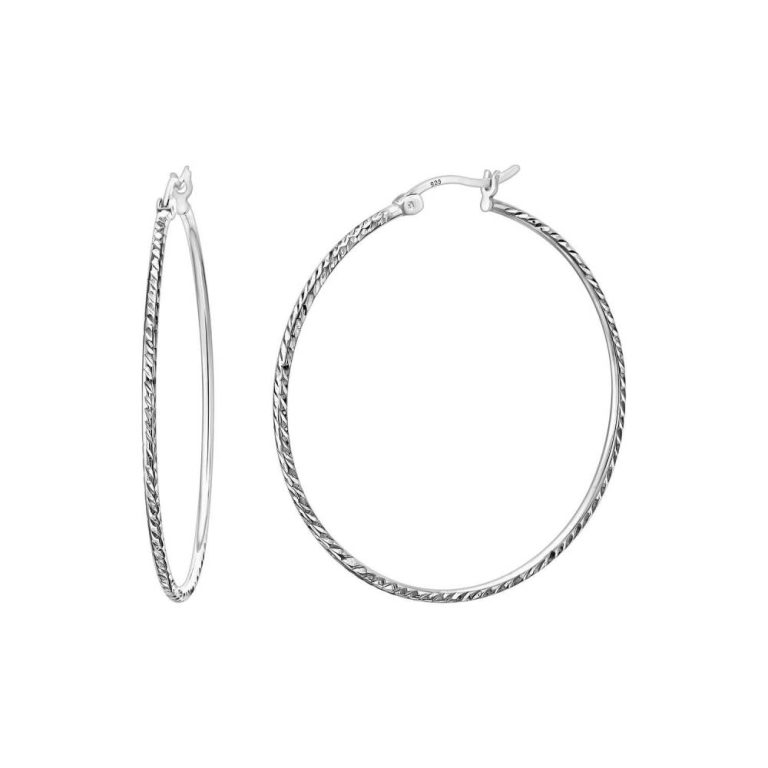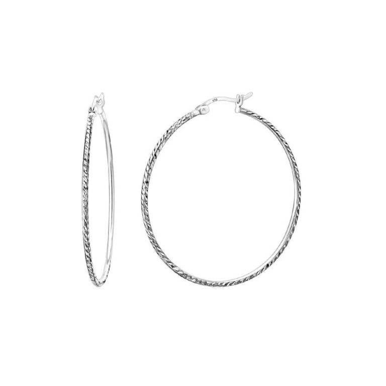 Mantra Silver 35mm Diamond Cut Hoop Earrings