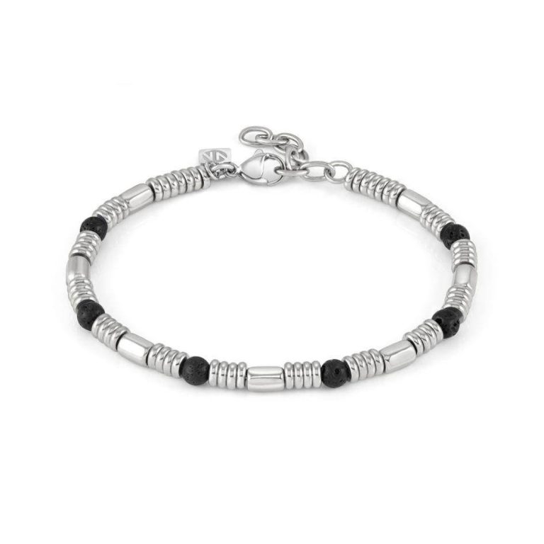 Nomination Instinct Style Steel & Black Lava Stone Bracelet