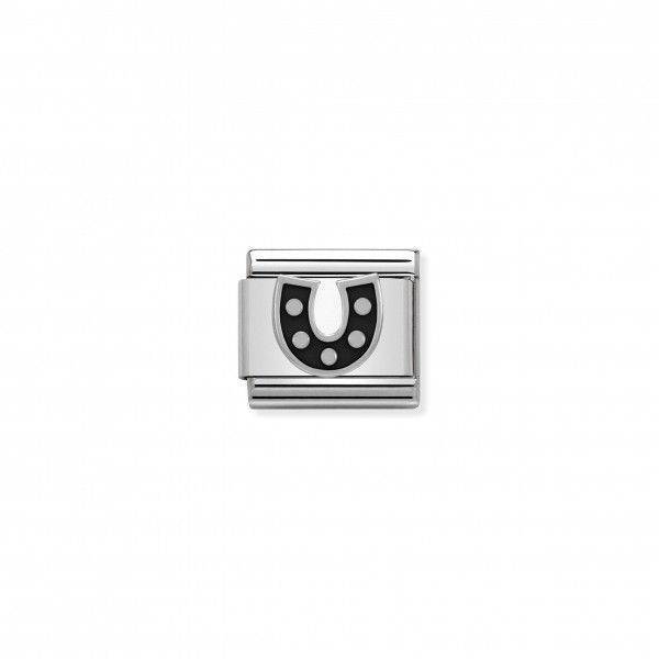Nomination Steel & Silver With Black Enamel Horseshoe