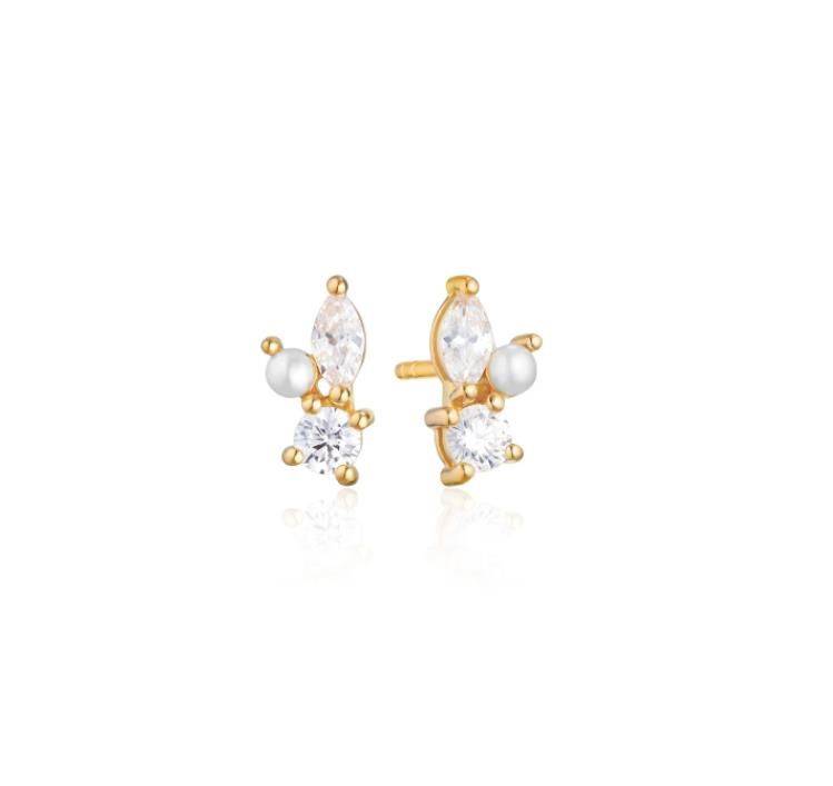 Sif Jakobs Yellow Gold Plated Pearl & Cubic Zirconia Stud Earrings