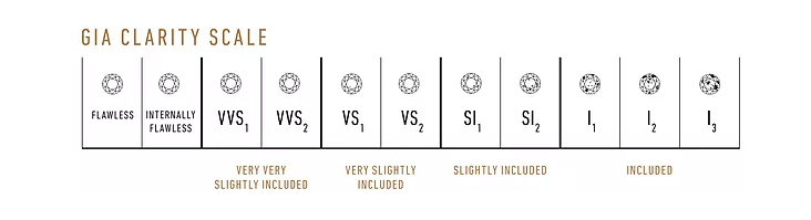 The clarity grade as above goes from Flawless down to Included. From slightly included 2 (Si2) and above inclusions can only be seen under 10x magnification. As you go from VVS1 down to Si2 the inclusions become easier to see but only under 10x magnification. An included diamond with a grade I1, I2 or I3 has inclusions which may be noticeable to the naked eye and may affect the diamonds brilliance.