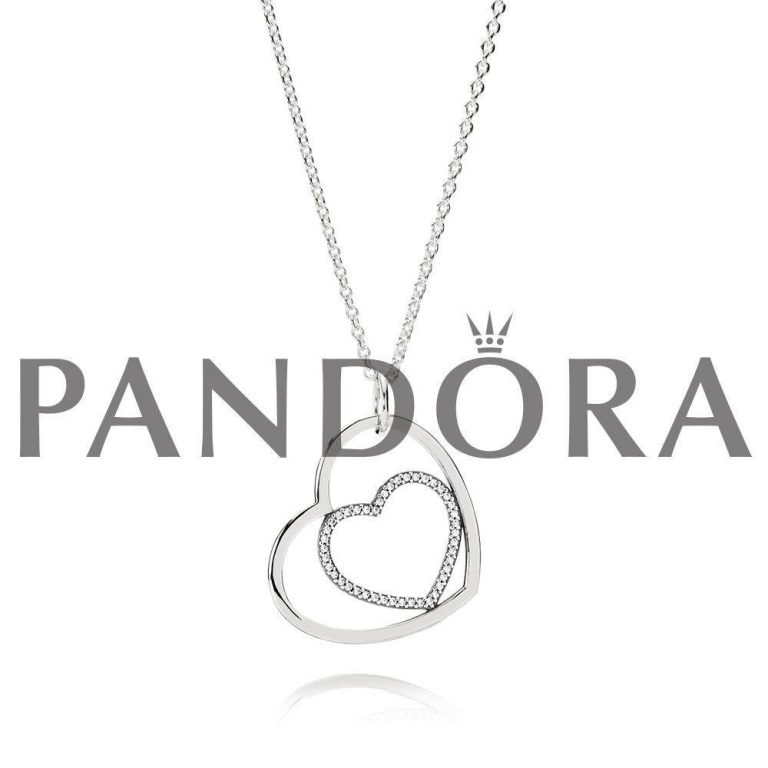 Hearts silver pendant with cubic zirconia and necklace