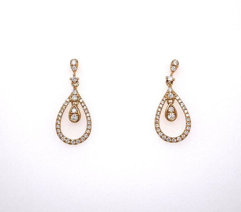 9ct Yellow Gold Swirl Teardrop Diamond Earrings