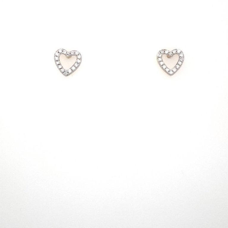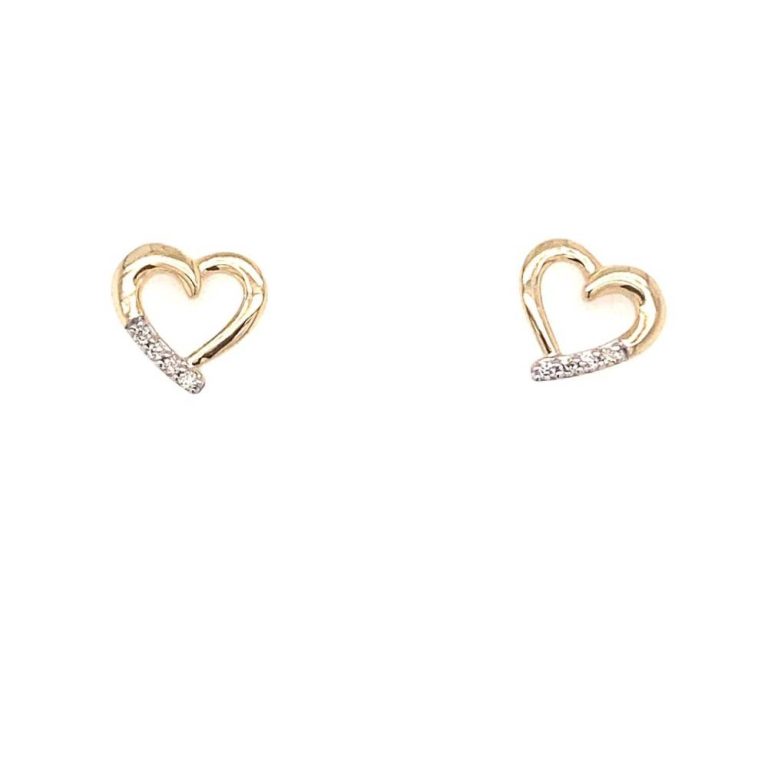 9ct Yellow Gold Open Diamond Set Heart Stud Earrings