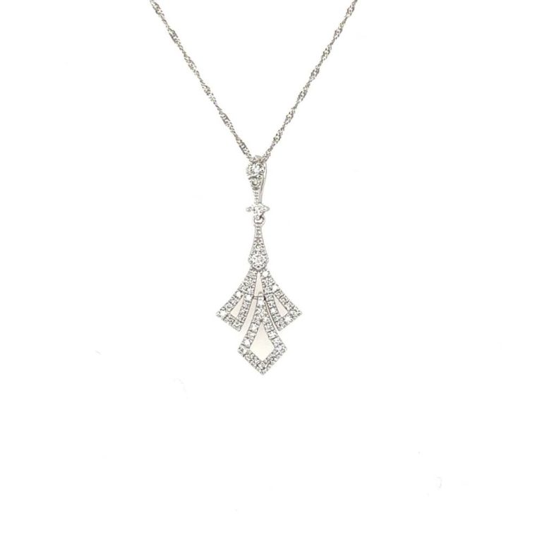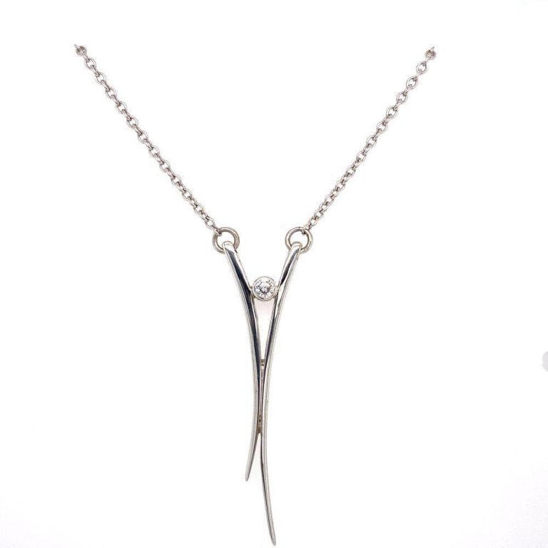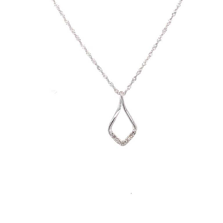9ct White Gold ‘V’ Shape Diamond Necklace