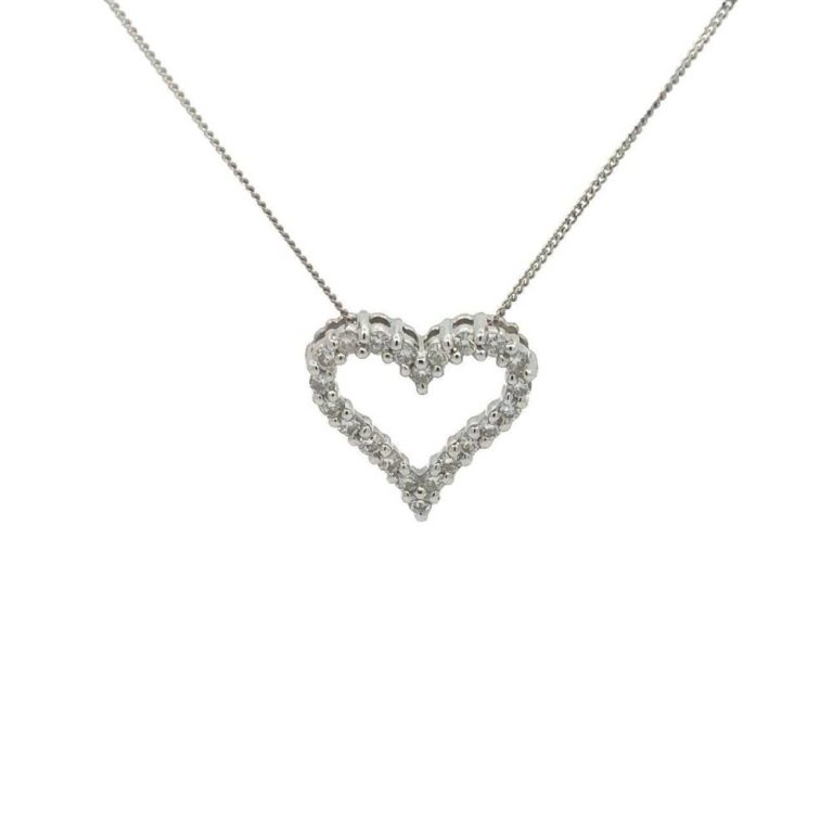 9ct White Gold Diamond Set Heart Pendant