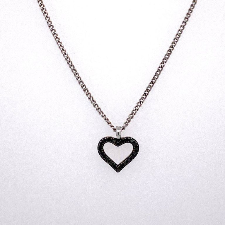 9ct White Gold Black Diamond Heart Pendant