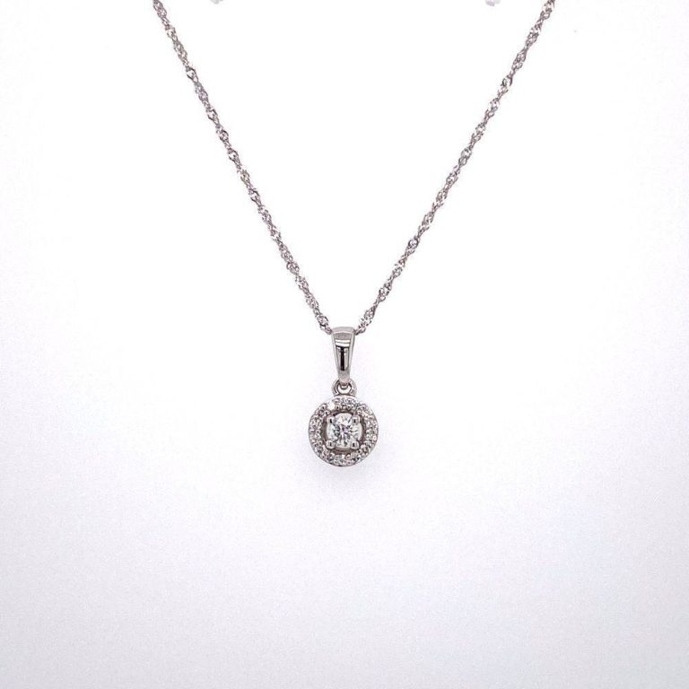 9ct White Gold Diamond Halo Pendant