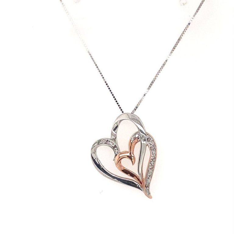 9ct White & Rose Gold Overlapping Hearts Pendant