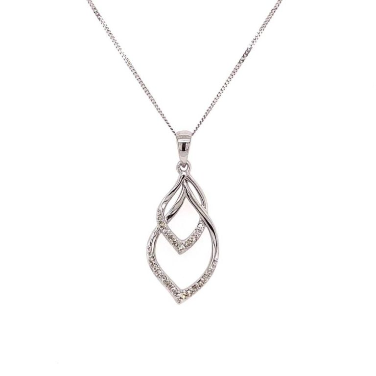 9ct White Gold Double Open Diamond Set Pendant
