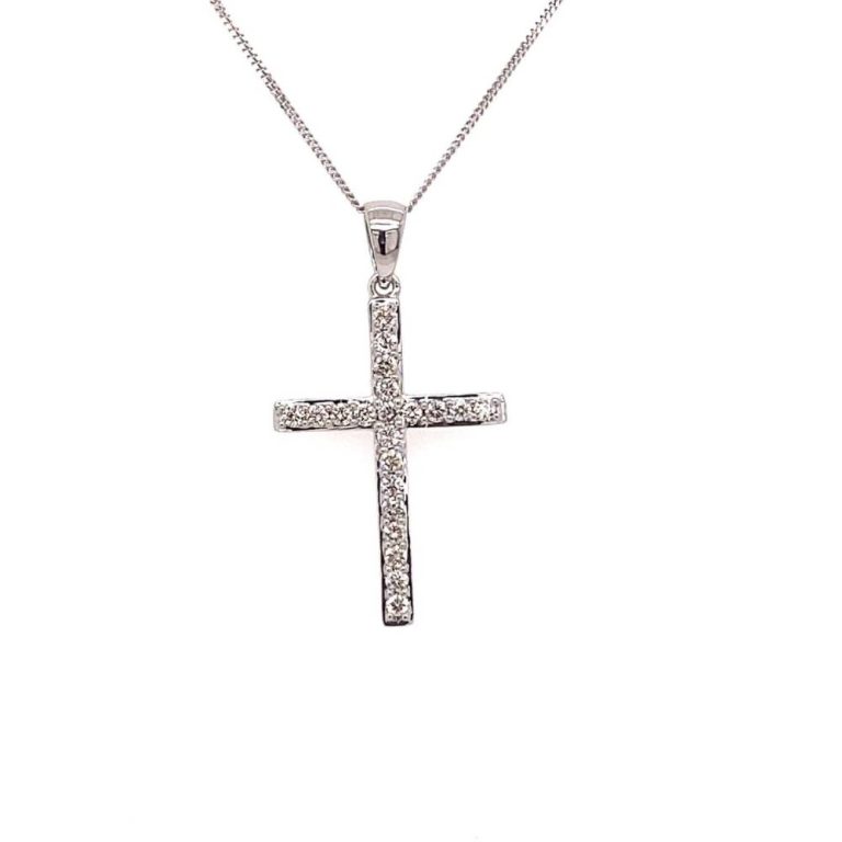9ct White Gold Diamond Set Cross Pendant