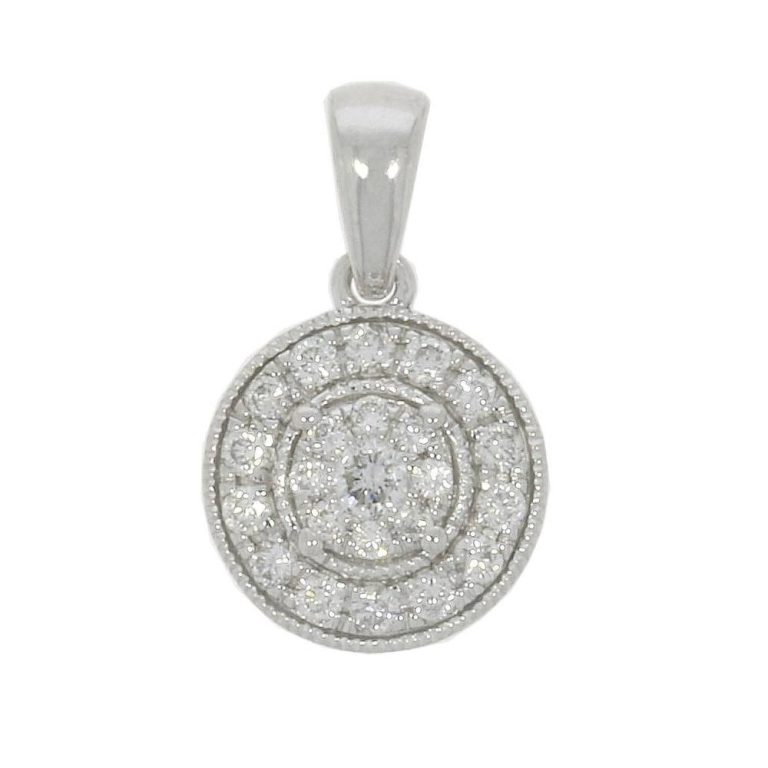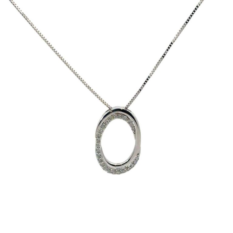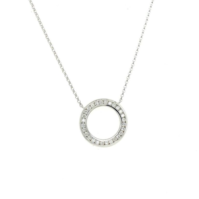 9ct White Gold Round Brilliant Cut Diamond Circle Necklace