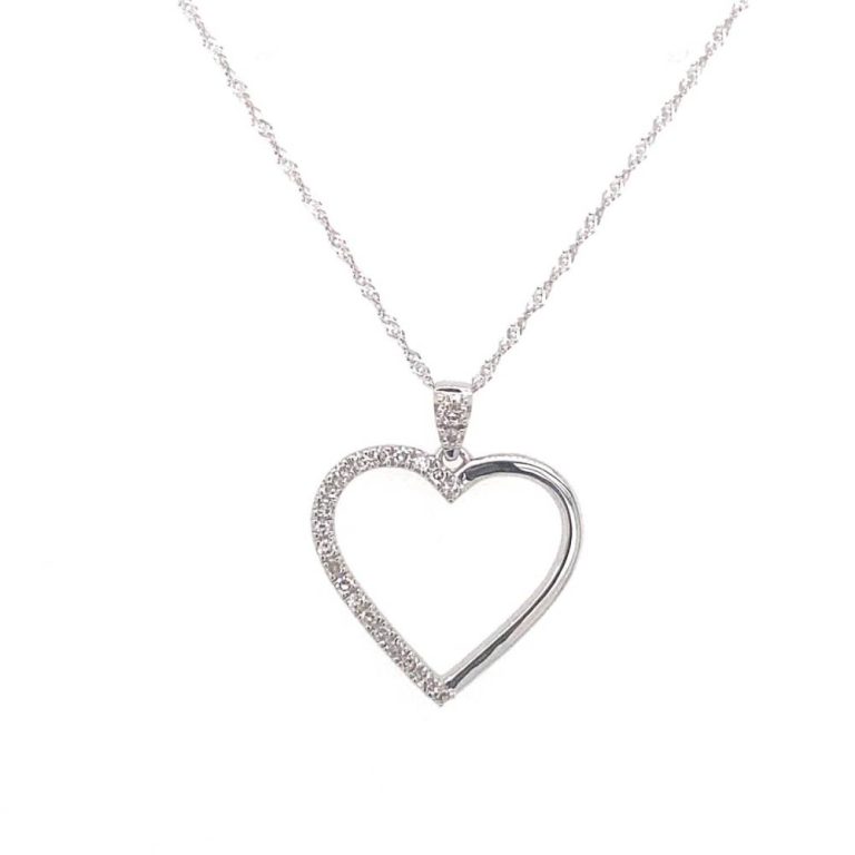 9ct White Gold Open Teardrop Diamond Set Pendant