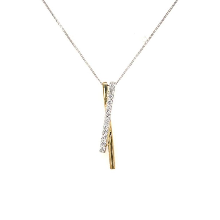 9ct Yellow & White Gold Cross Over Diamond Pendant