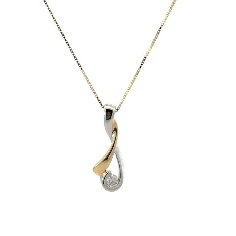 9ct Yellow & White Gold Diamond Circle Twist Pendant