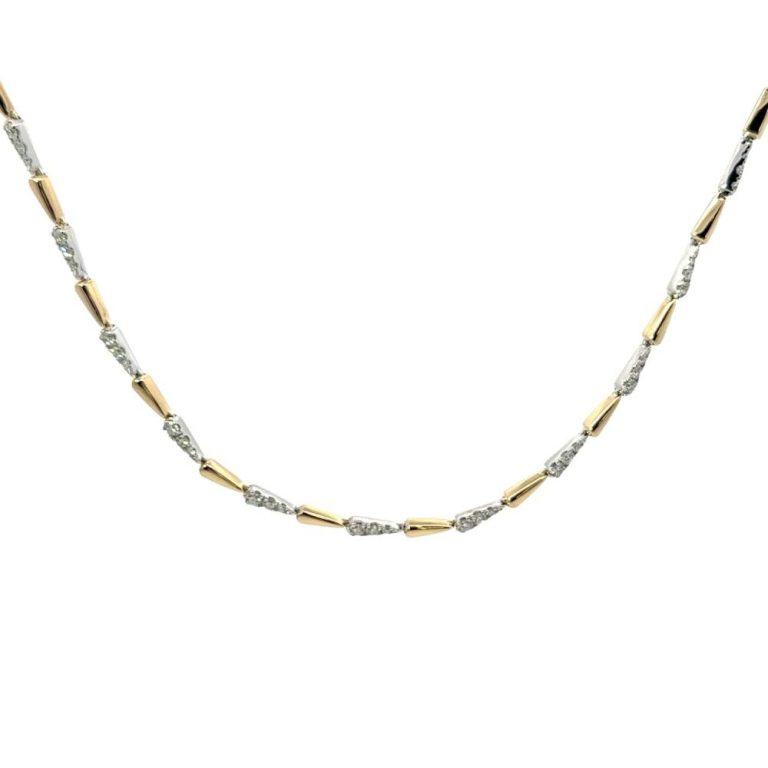 9ct Yellow & White Gold Diamond Set Point Necklace