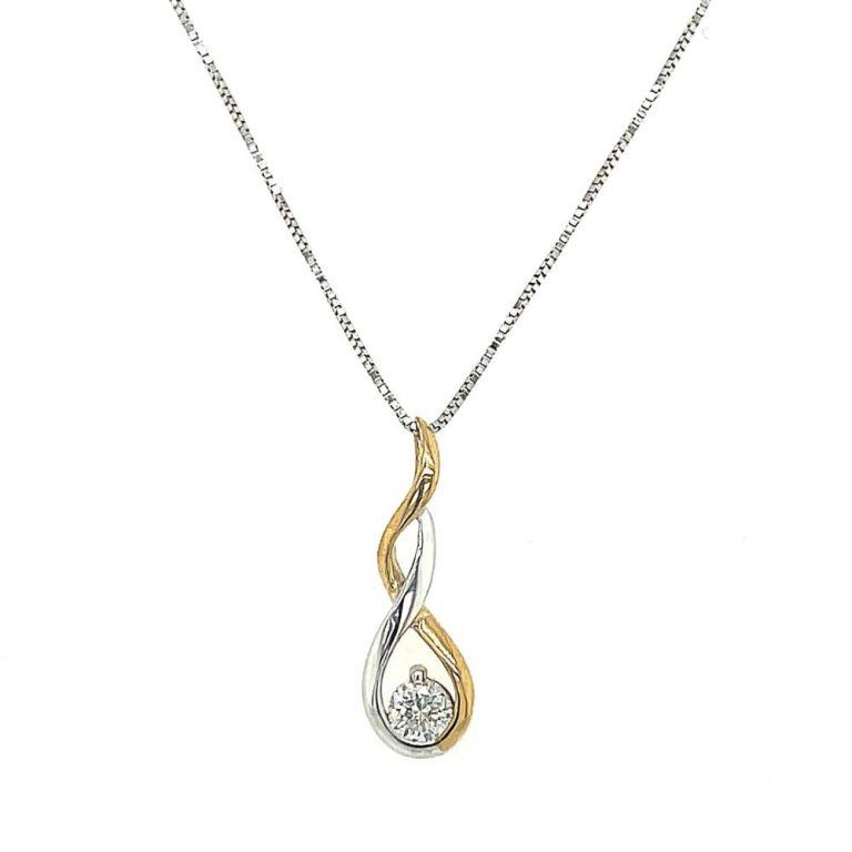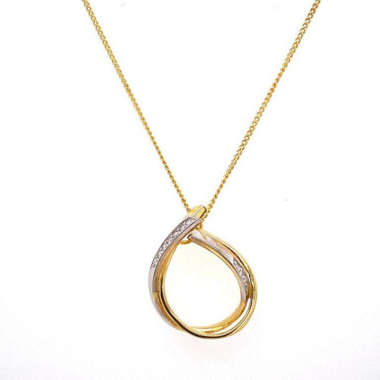 9ct Yellow & White Gold Swirl Diamond Pendant
