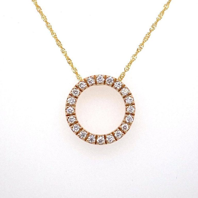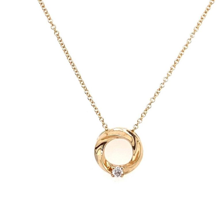 9ct Yellow Gold Circle Necklace with a Single Diamond