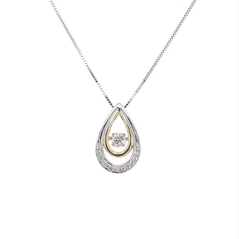 9ct Yellow & White Gold Open Teardrop Diamond Pendant