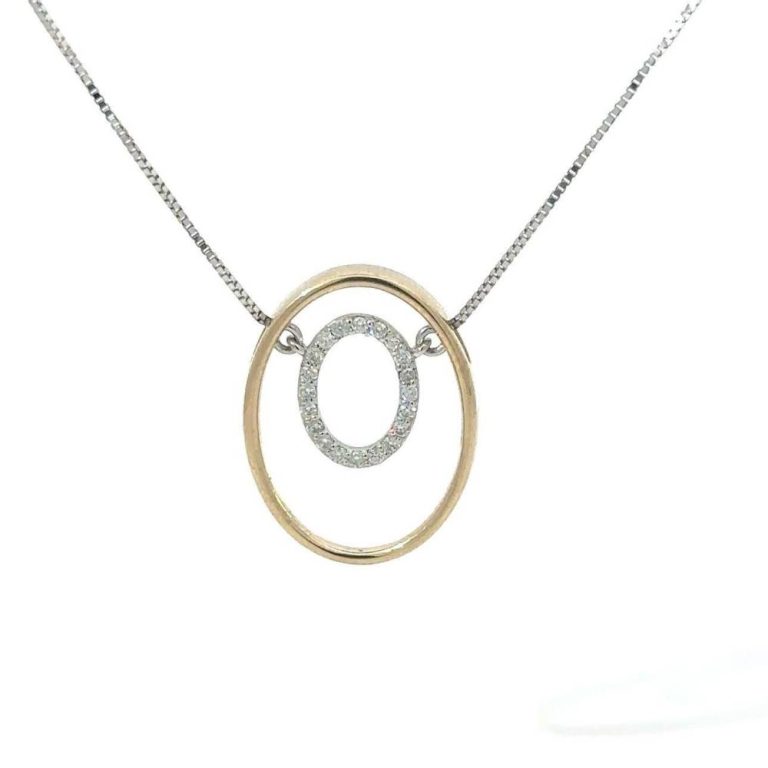 9ct Yellow & White Gold Open Ovals Diamond Pendant