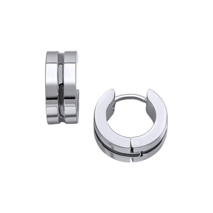 Fred Bennett Stainless Steel Black Stripe Hoop Earrings
