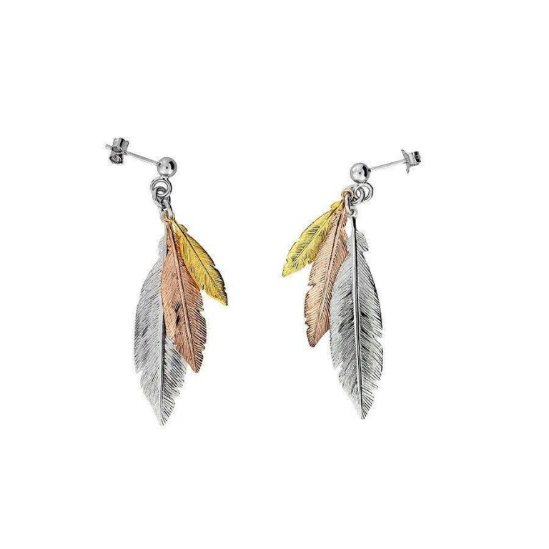 Azendi Silver & Gold Plated Double Feather Drop Earrings