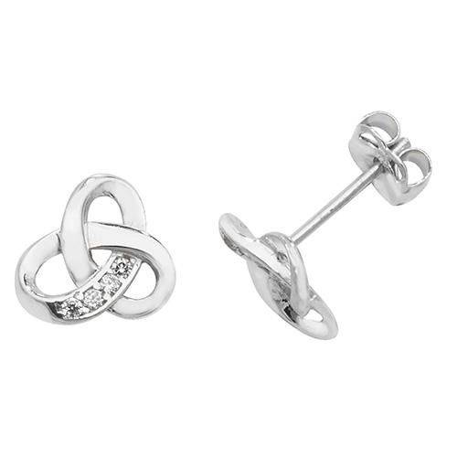 9ct White Gold Celtic CZ Stud Earrings