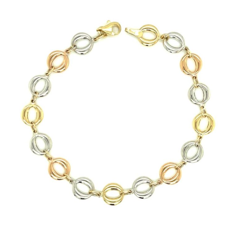 9ct Yellow, White & Rose Gold Circle Link Bracelet