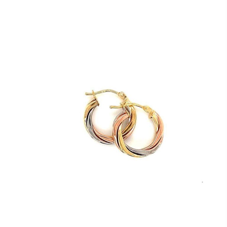 9ct Three Colour Gold Hoop Earrings