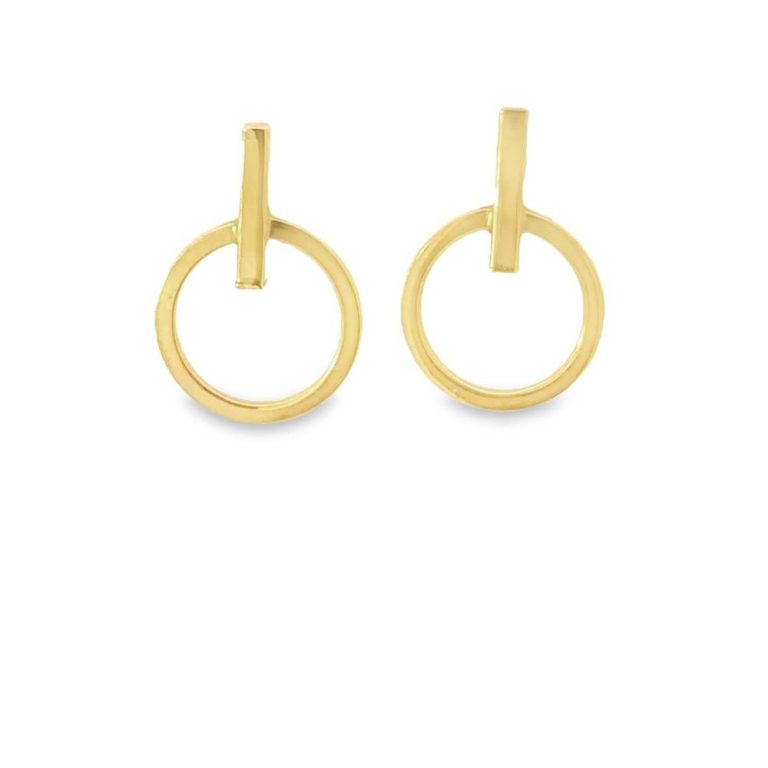 9ct Yellow Gold Bar & Circle Stud Earrings