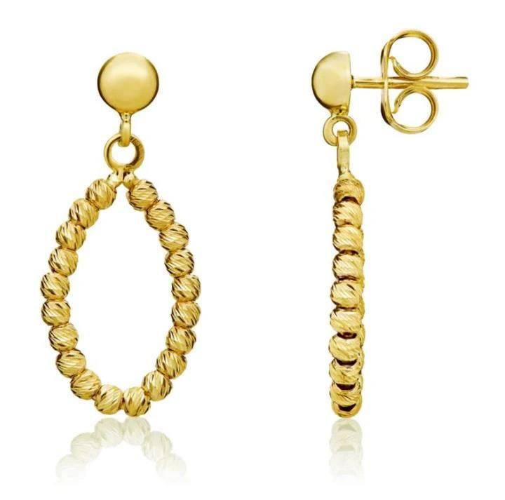 9ct Yellow Gold Bead Oval Drop Earrings