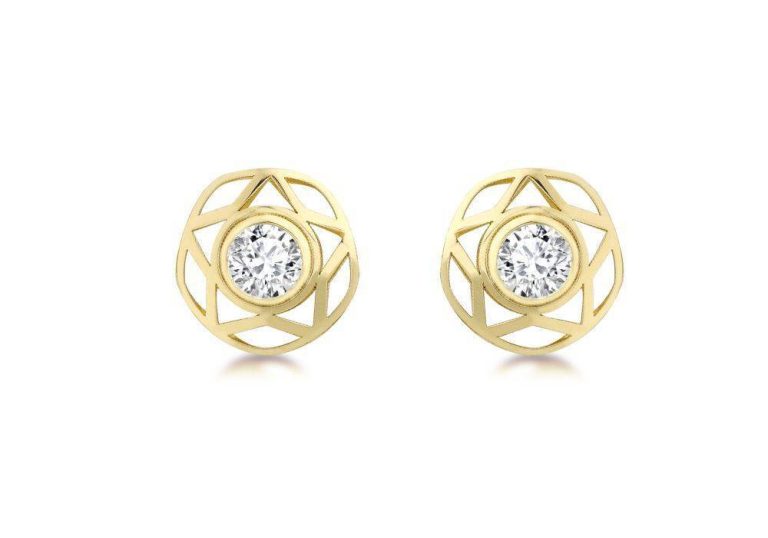9ct Yellow Gold Cubic Zirconia Cut OUt Surround Stud Earrings