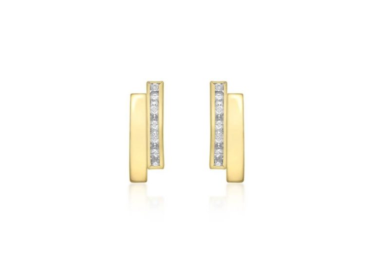 9ct Yellow Gold Cubic Zirconia Double Bar Stud Earrings