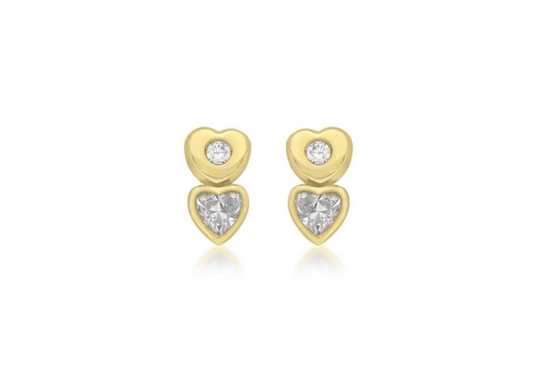 9ct Yellow Gold Cubic Zirconia Double Heart Earrings