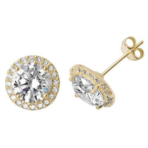 9ct Yellow Gold Cubic Zirconia Halo Stud Earrings